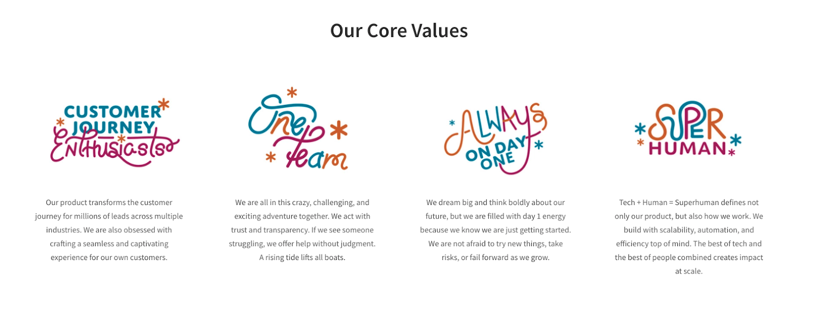 Lots of companies have core values on their website … but sometimes they’re pretty bland. Light them up like Verse.io! Make them sparkle and share why each one is important to the company.Â